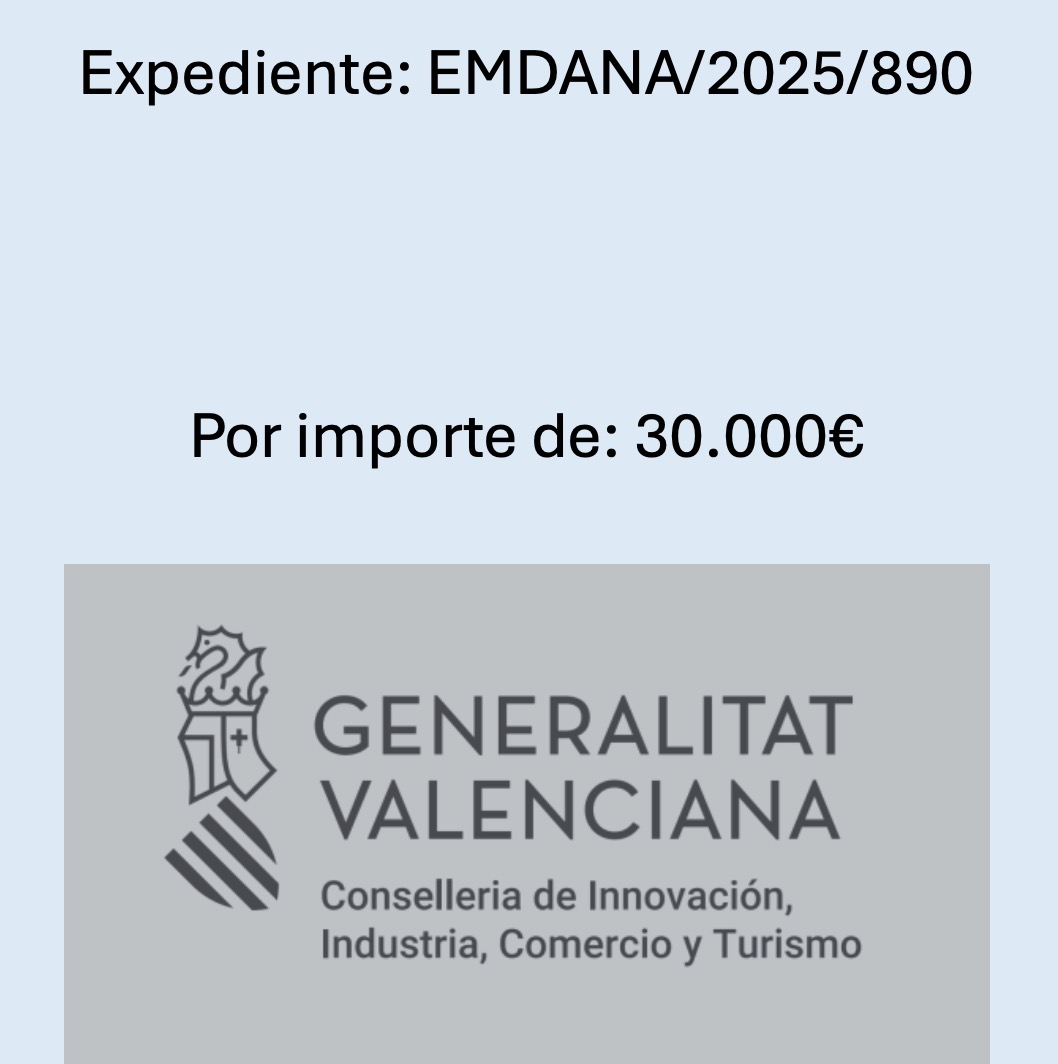 La Generalitat Valenciana, a través de la Conselleria de Innovación, Industria, Comercio y Turismo, ha concedido una ayuda pública de 30.000 euros destinada a apoyar a autónomos y pequeñas empresas de los municipios afectados por la DANA en la Comunitat Valenciana.